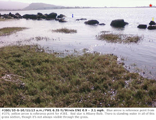 The tide is now an ebb tide, receding. When the tide changes, the water level holds very steady for about 30 minutes (.03 ft = .36 inches or roughly 1/3 inch; .01 ft = .12 inches or roughly 1/8 inch).